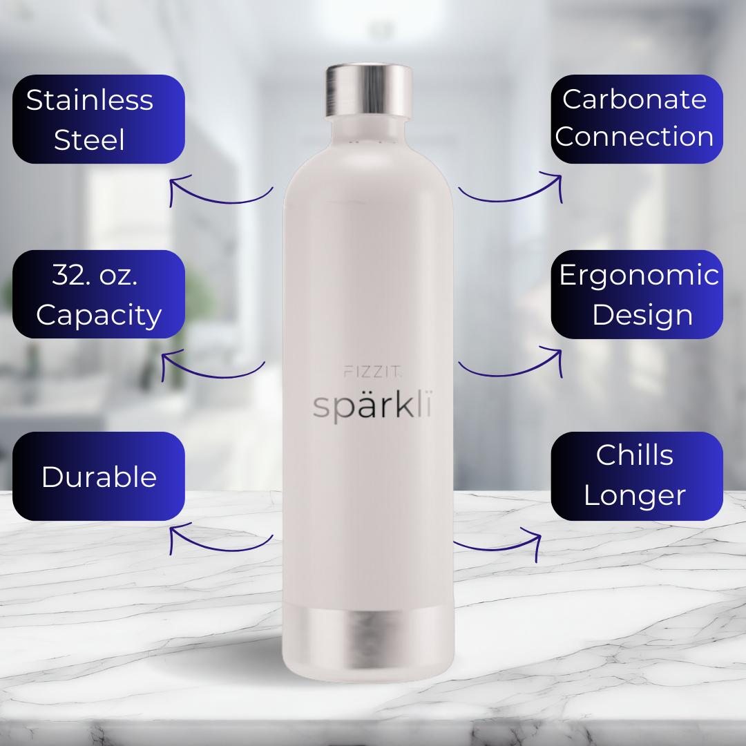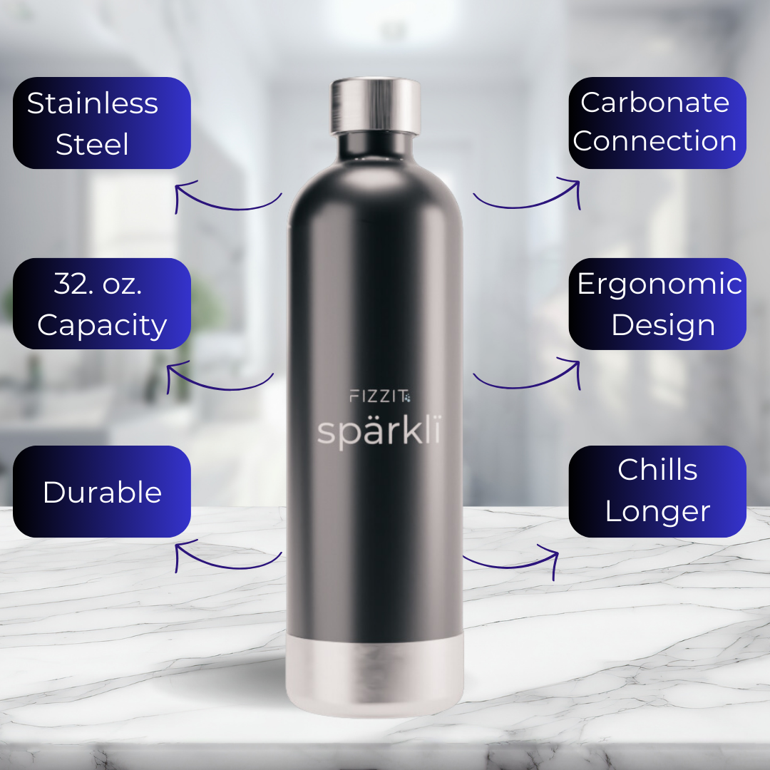 Say goodbye to single-use plastic bottles and hello to sustainability with Fizzit’s reusable stainless steel carbonating bottles. Designed for durability and dishwasher-safe convenience, our bottles reduce waste and help you sip with a clear conscience.