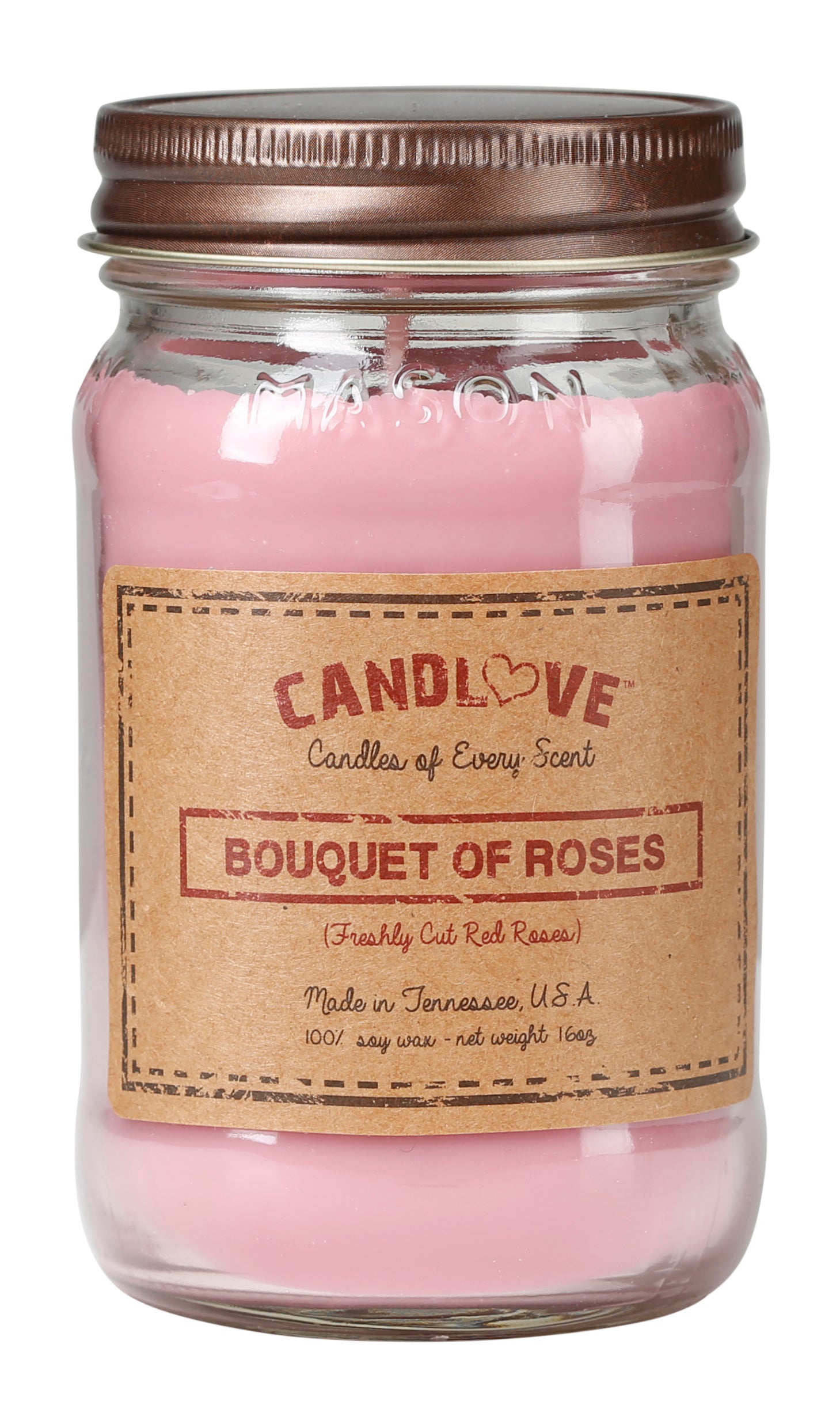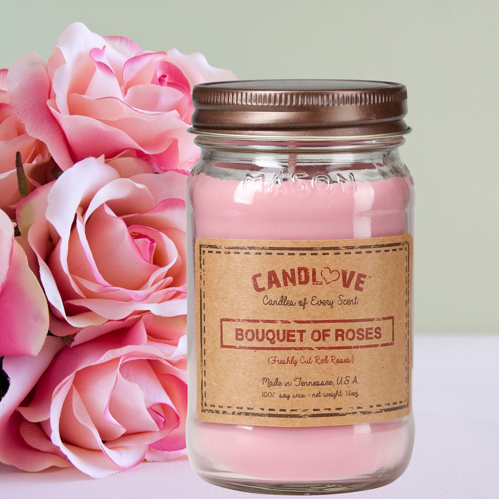 Candlove Bouquet of Roses Scented Candle - Non-Toxic 100% Soy Candle - Handmade & Hand Poured Long Burning Candle - Highly Scented All Natural Clean Burning Candle (16 OZ Mason Jar) Made in The USA