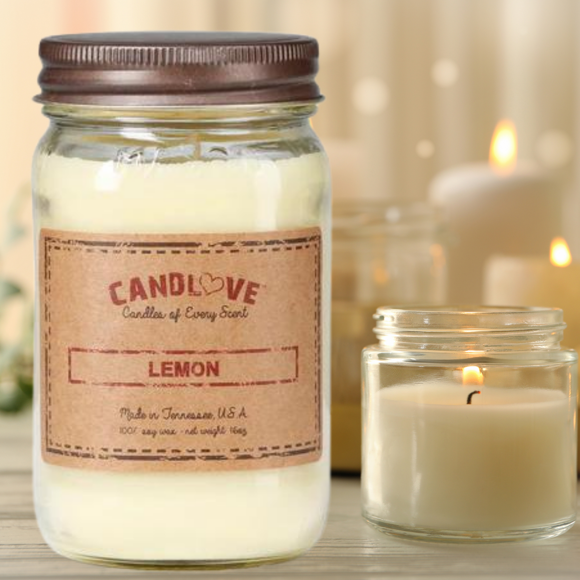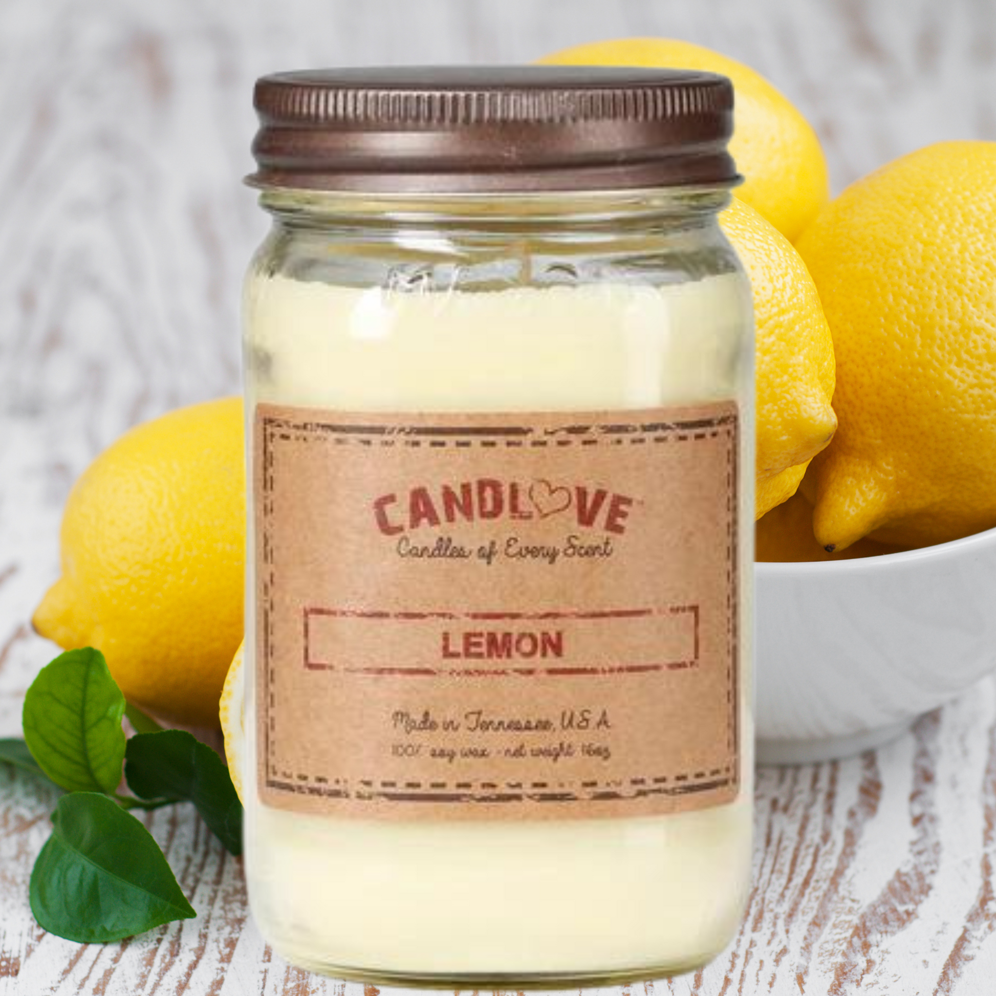 Candlove Lemon Scented Candle - Non-Toxic 100% Soy Candle - Handmade & Hand Poured Long Burning Candle - Highly Scented All Natural Clean Burning Candle (16 OZ Mason Jar) Made in The USA