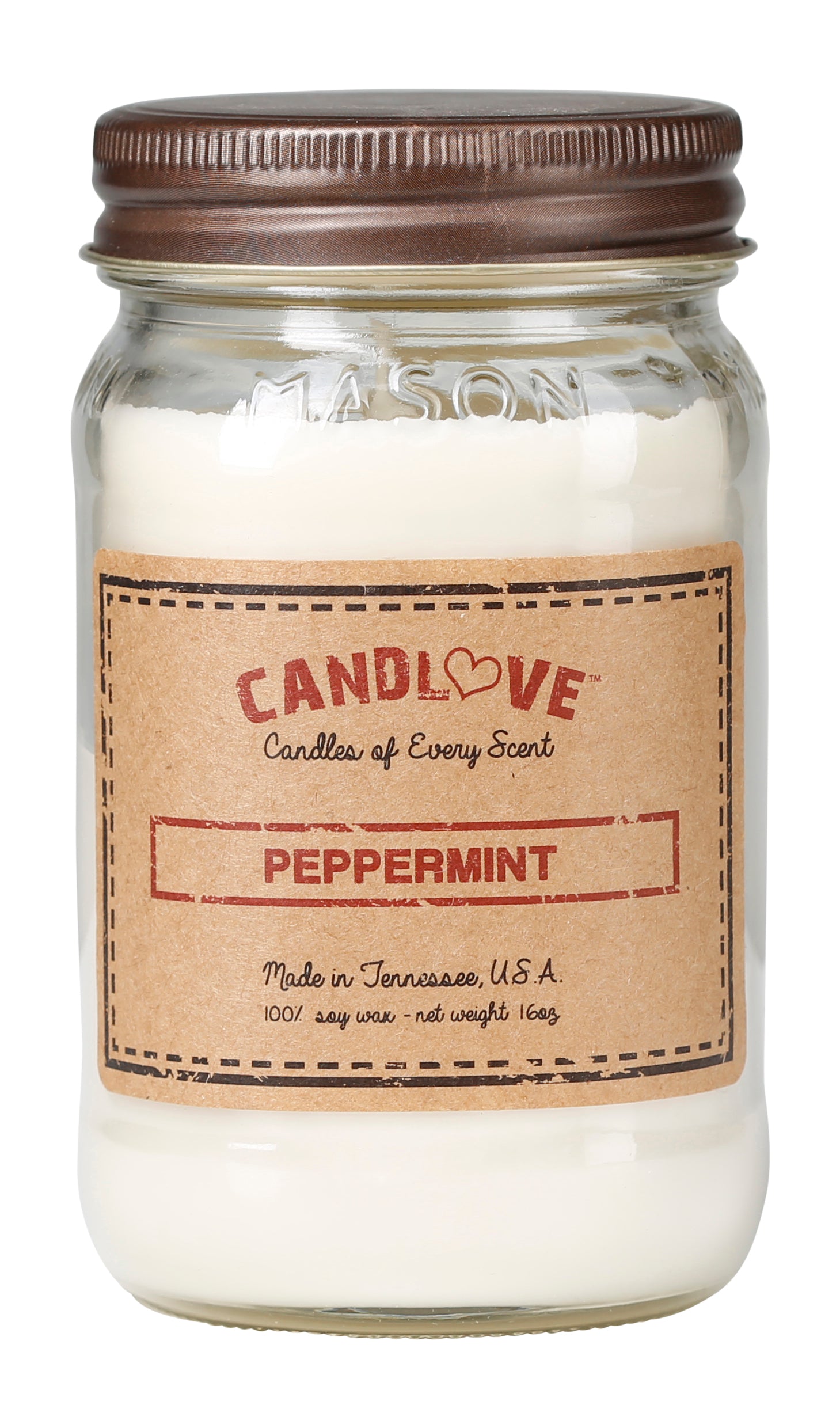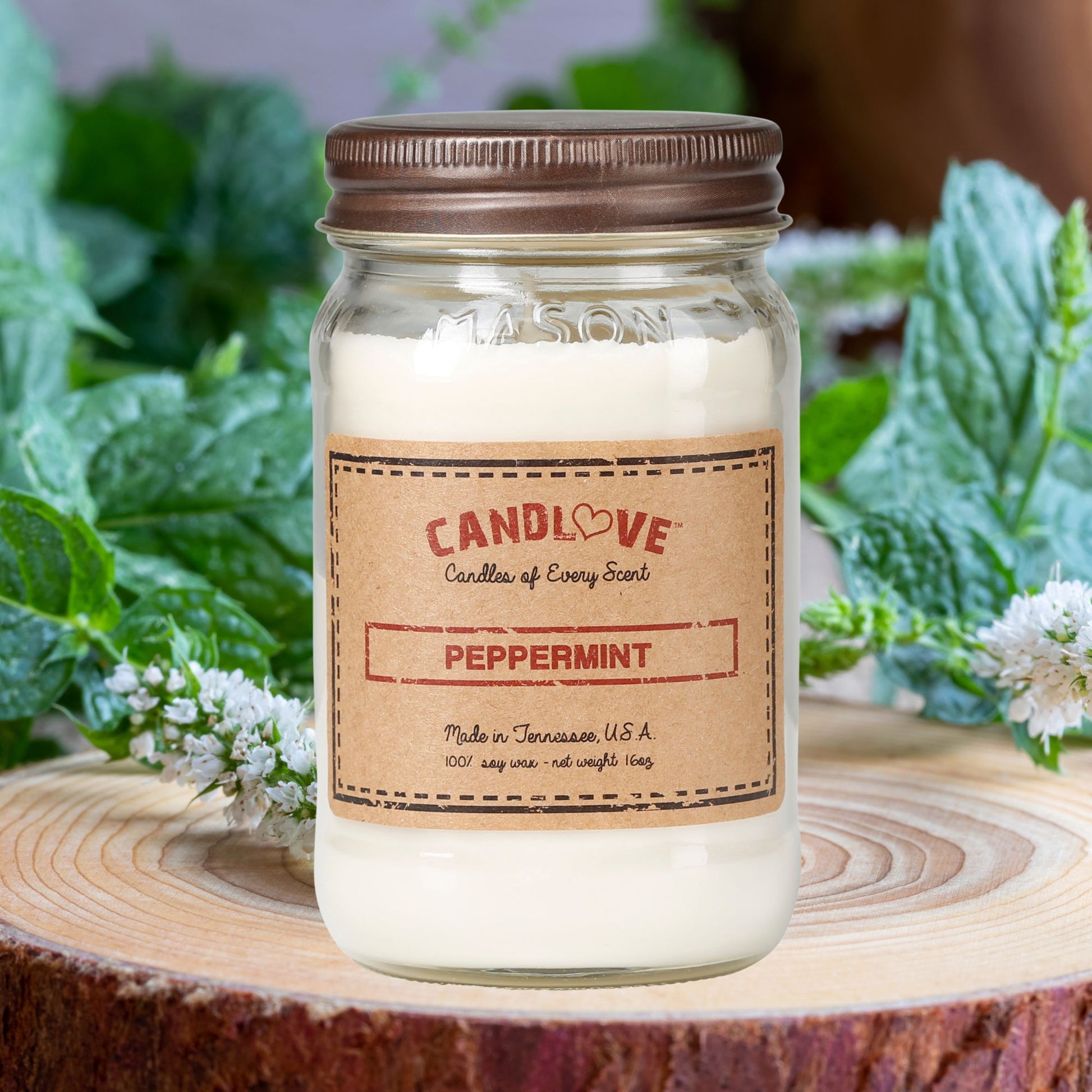 Candlove Peppermint Scented Candle - Non-Toxic 100% Soy Candle - Handmade & Hand Poured Long Burning Candle - Highly Scented All Natural Clean Burning Candle (16 OZ Mason Jar) Made in The USA