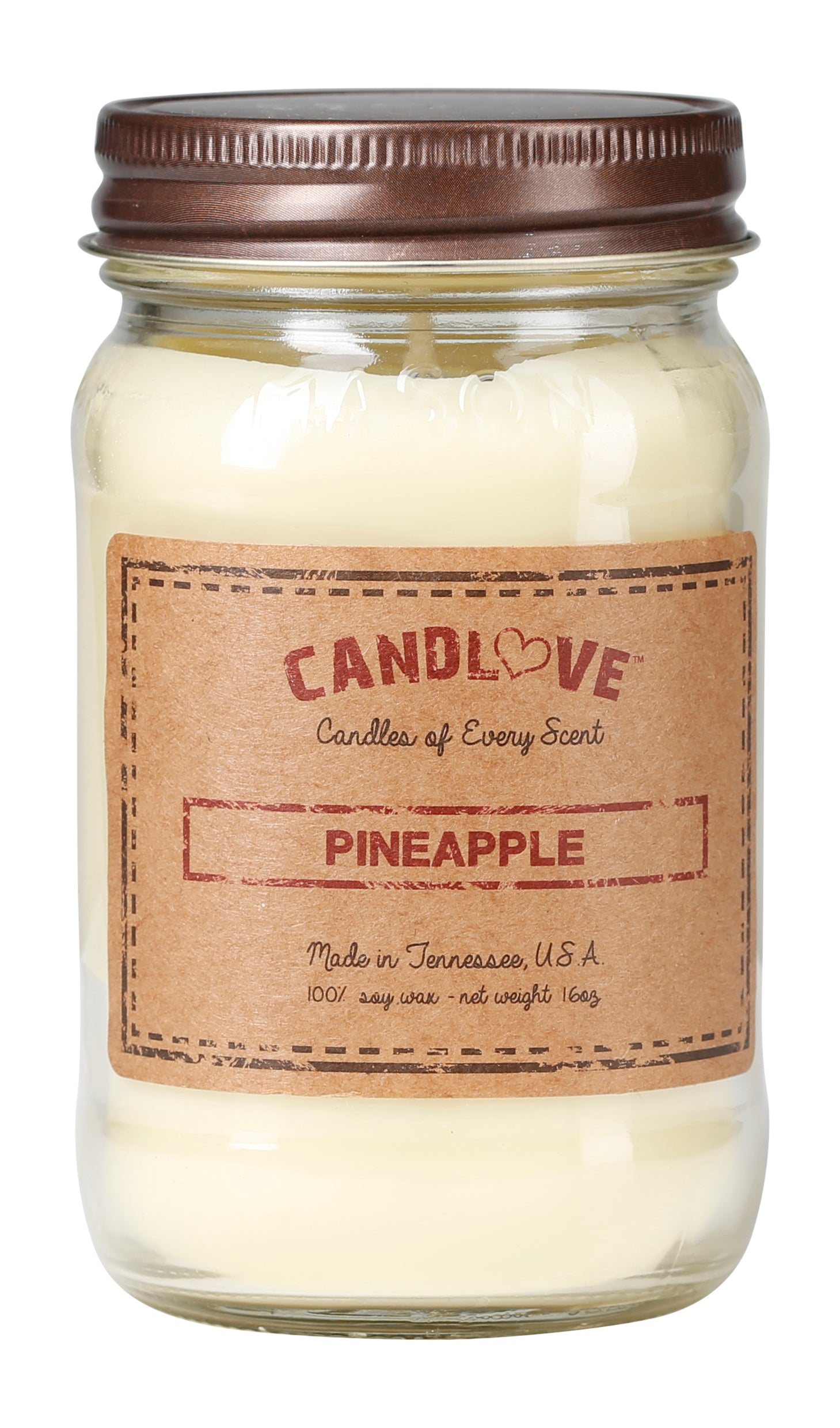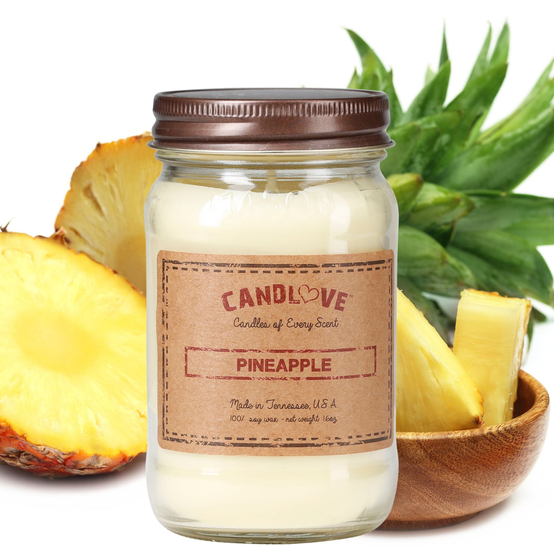 Candlove Pineapple Scented Candle - Non-Toxic 100% Soy Candle - Handmade & Hand Poured Long Burning Candle - Highly Scented All Natural Clean Burning Candle (16 OZ Mason Jar) Made in The USA