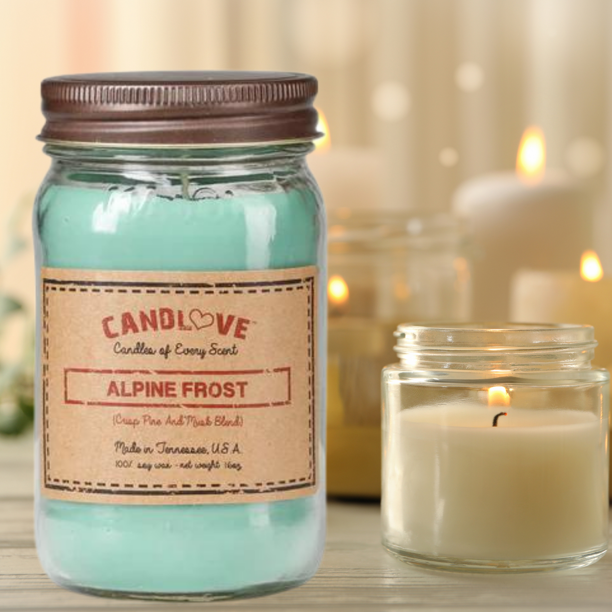 Candlove Alpine Frost Scented Candle - Non-Toxic 100% Soy Candle - Handmade & Hand Poured Long Burning Candle - Highly Scented All Natural Clean Burning Candle (16 OZ Mason Jar) Made in The USA
