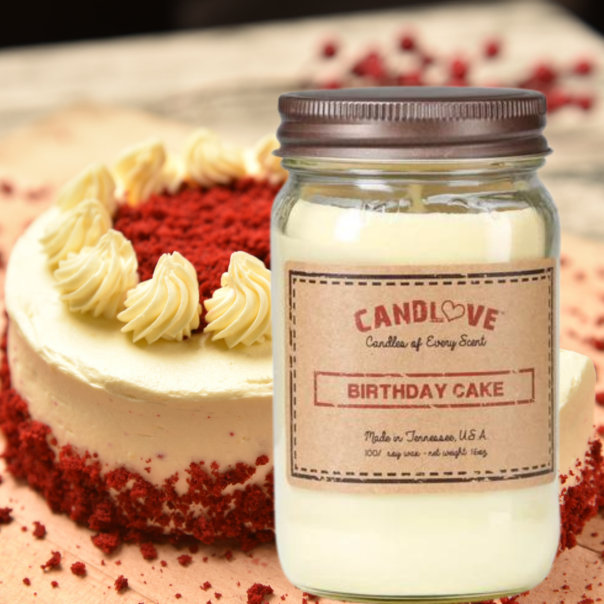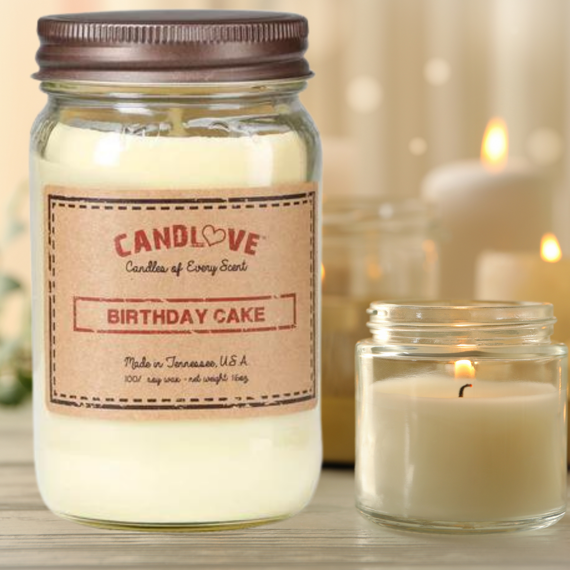 Candlove Birthday Cake Scented Candle - Non-Toxic 100% Soy Candle - Handmade & Hand Poured Long Burning Candle - Highly Scented All Natural Clean Burning Candle (16 OZ Mason Jar) Made in The USA