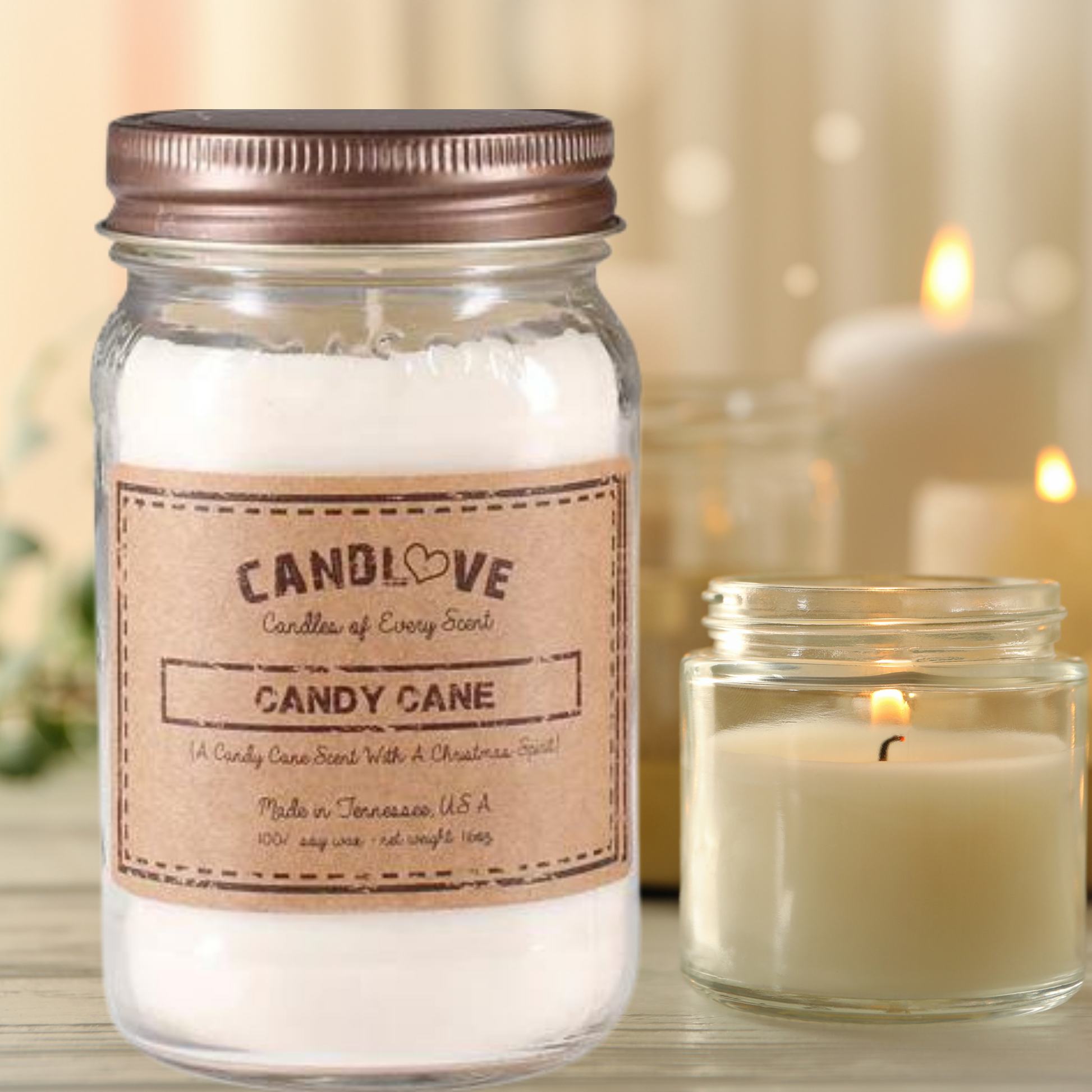 Candlove Candy Cane Scented Candle - Non-Toxic 100% Soy Candle - Handmade & Hand Poured Long Burning Candle - Highly Scented All Natural Clean Burning Candle (16 OZ Mason Jar) Made in The USA