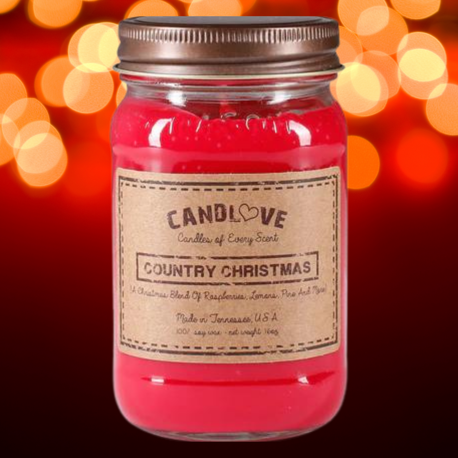 Candlove Country Christmas Scented Candle - Non-Toxic 100% Soy Candle - Handmade & Hand Poured Long Burning Candle - Highly Scented All Natural Clean Burning Candle (16 OZ Mason Jar) Made in The USA