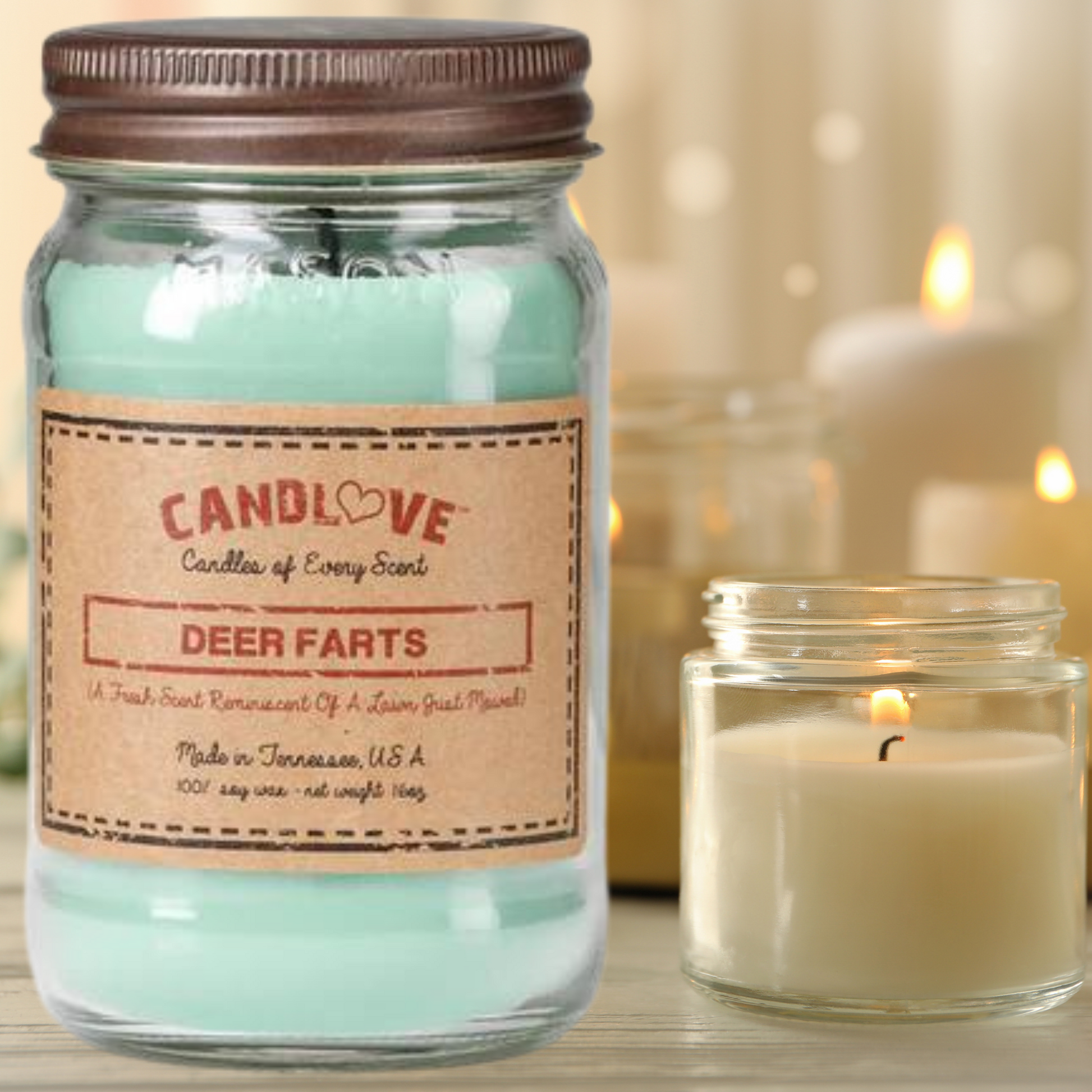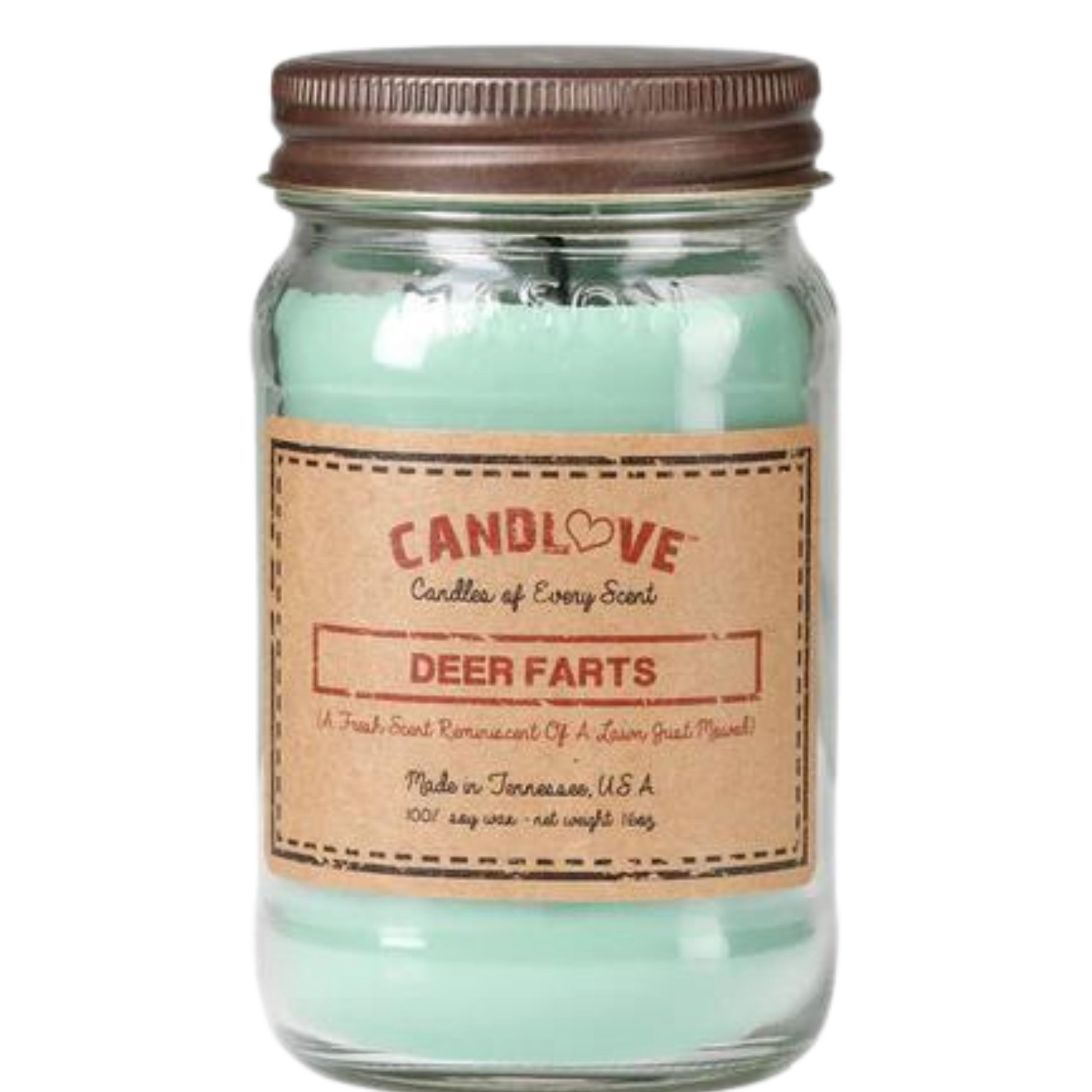 Candlove Deer Farts Scented Candle - Non-Toxic 100% Soy Candle - Handmade & Hand Poured Long Burning Candle - Highly Scented All Natural Clean Burning Candle (16 OZ Mason Jar) Made in The USA