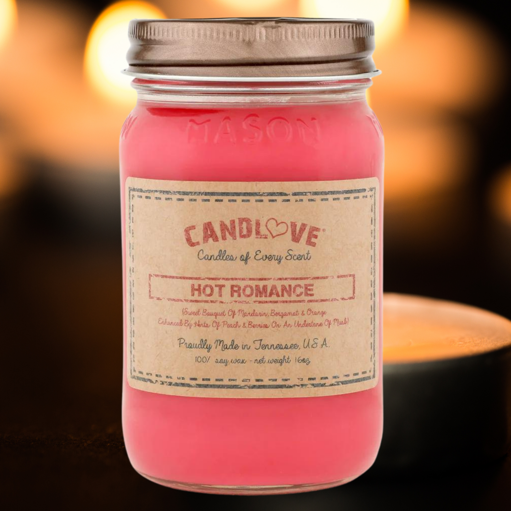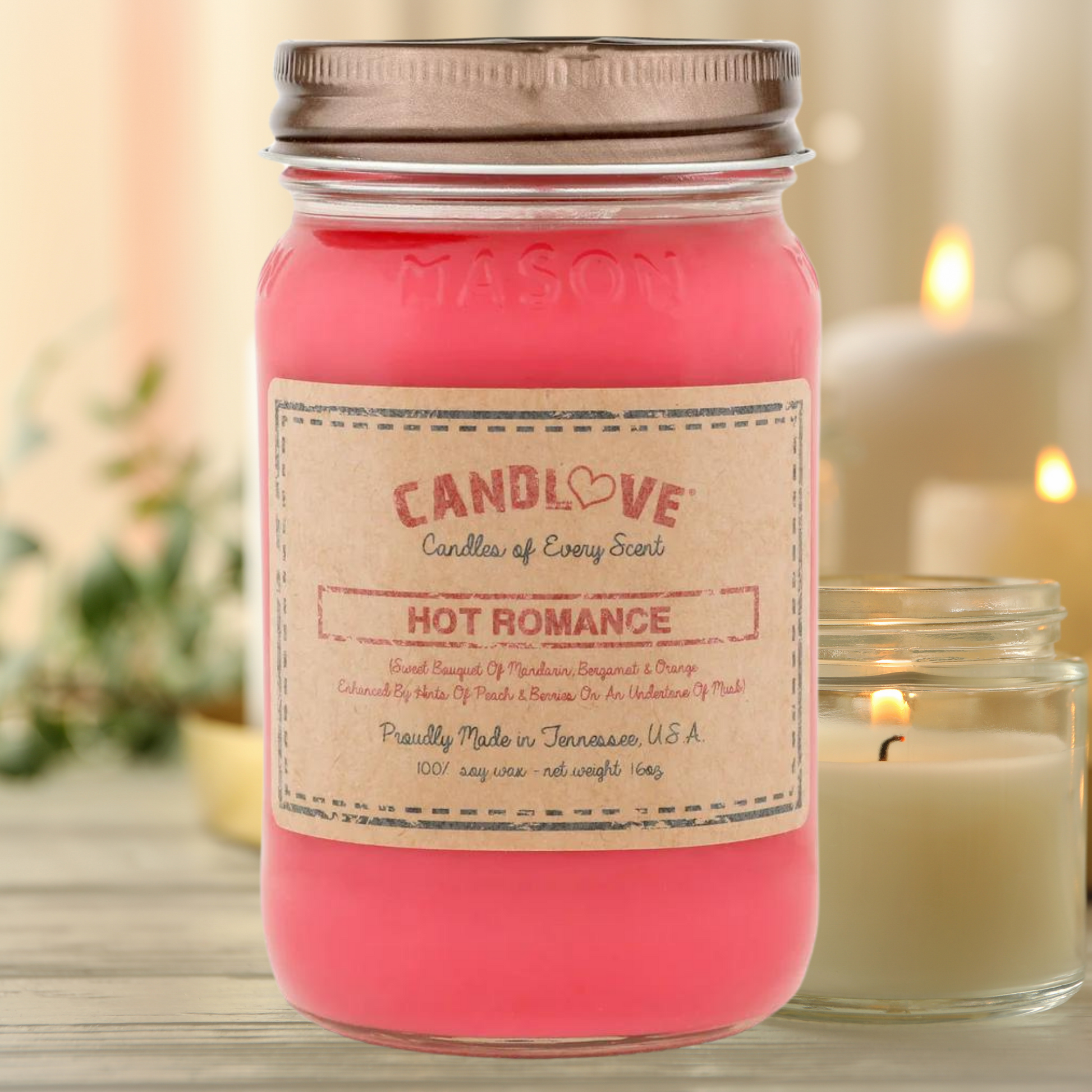 Candlove Hot Romance Scented Candle - Non-Toxic 100% Soy Candle - Handmade & Hand Poured Long Burning Candle - Highly Scented All Natural Clean Burning Candle (16 OZ Mason Jar) Made in The USA