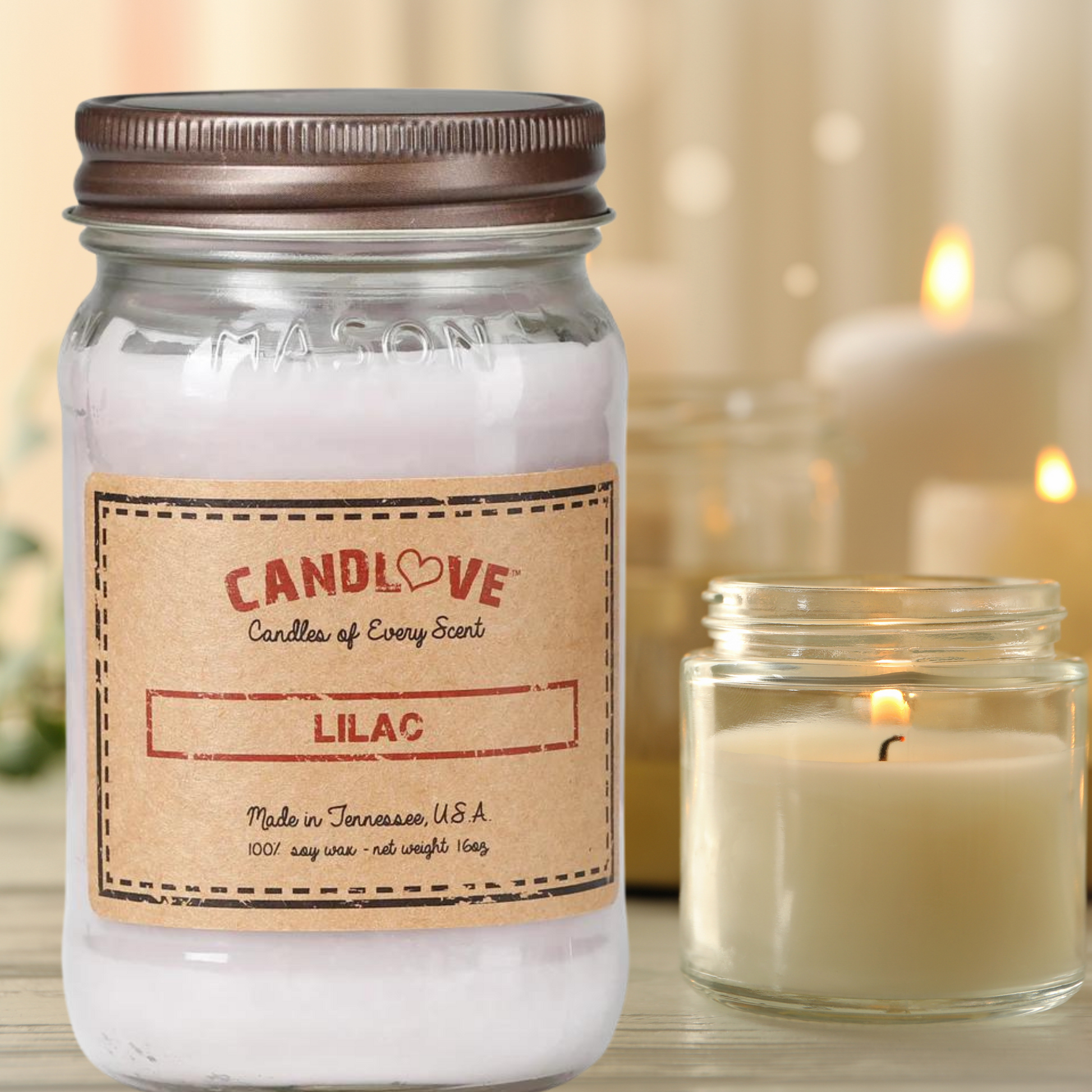 Candlove Lilac Scented Candle - Non-Toxic 100% Soy Candle - Handmade & Hand Poured Long Burning Candle - Highly Scented All Natural Clean Burning Candle (16 OZ Mason Jar) Made in The USA