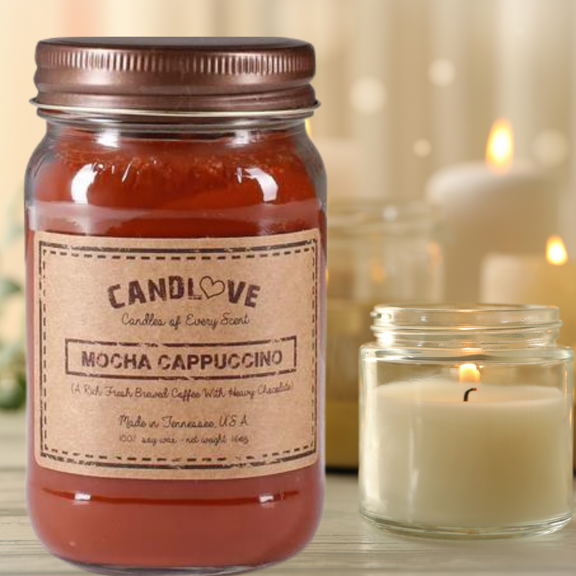 Candlove Mocha Cappuccino Scented Candle - Non-Toxic 100% Soy Candle - Handmade & Hand Poured Long Burning Candle - Highly Scented All Natural Clean Burning Candle (16 OZ Mason Jar) Made in The USA