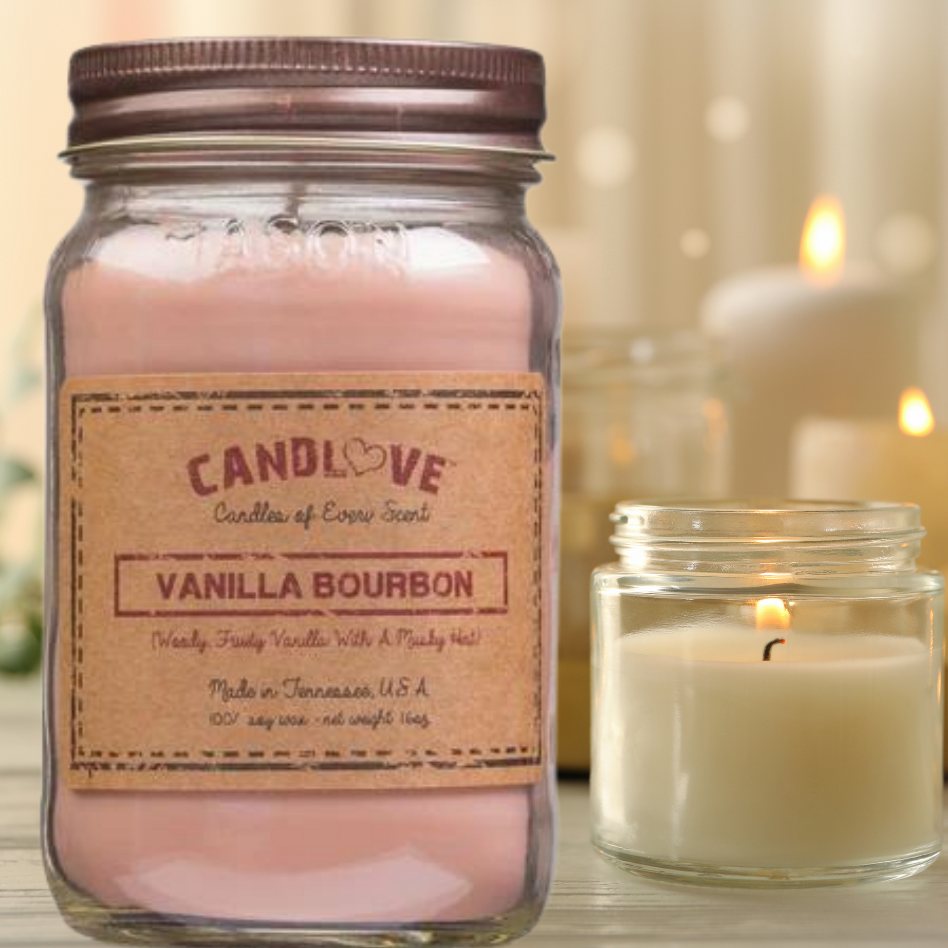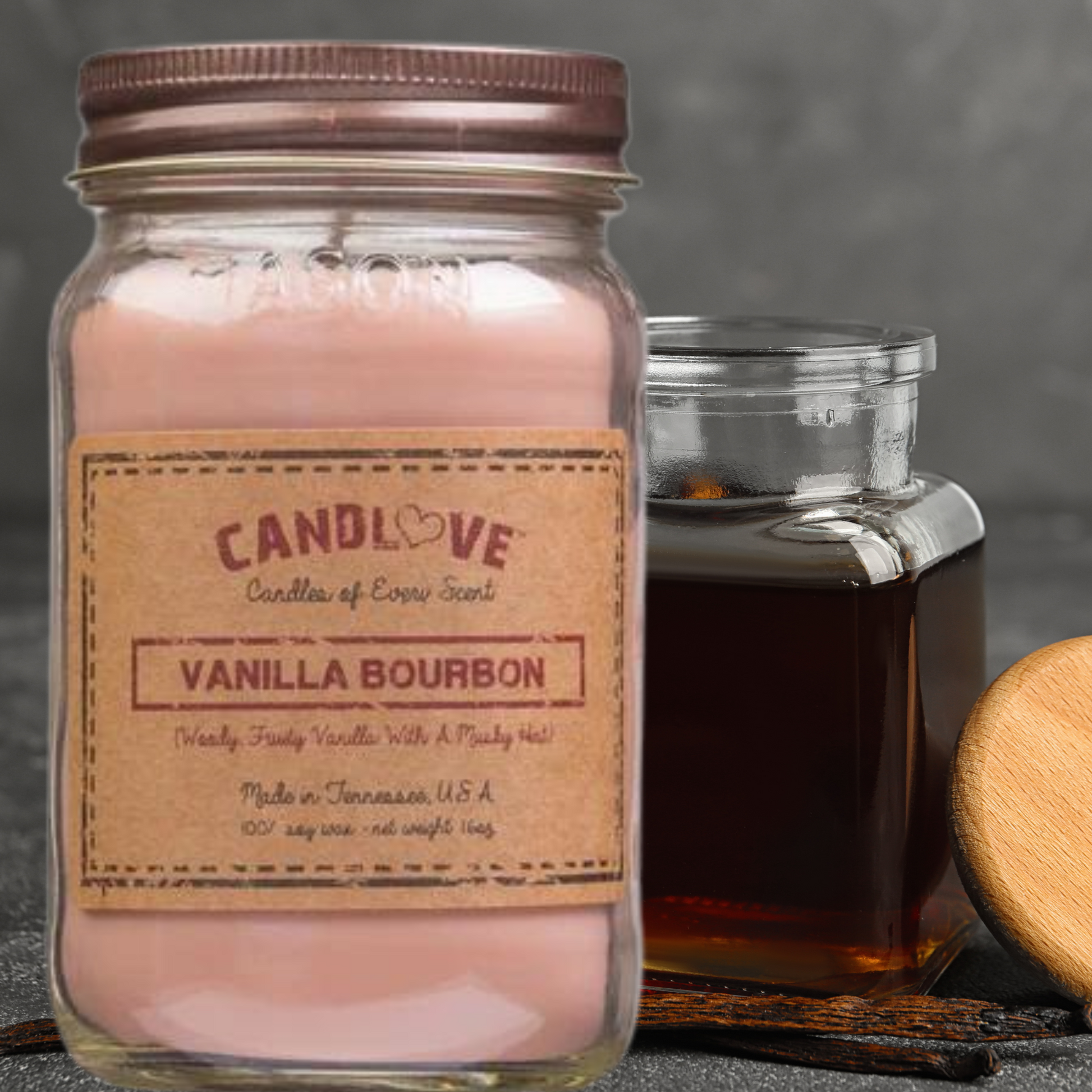 Candlove Vanilla Bourbon Scented Candle - Non-Toxic 100% Soy Candle - Handmade & Hand Poured Long Burning Candle - Highly Scented All Natural Clean Burning Candle (16 OZ Mason Jar) Made in The USA