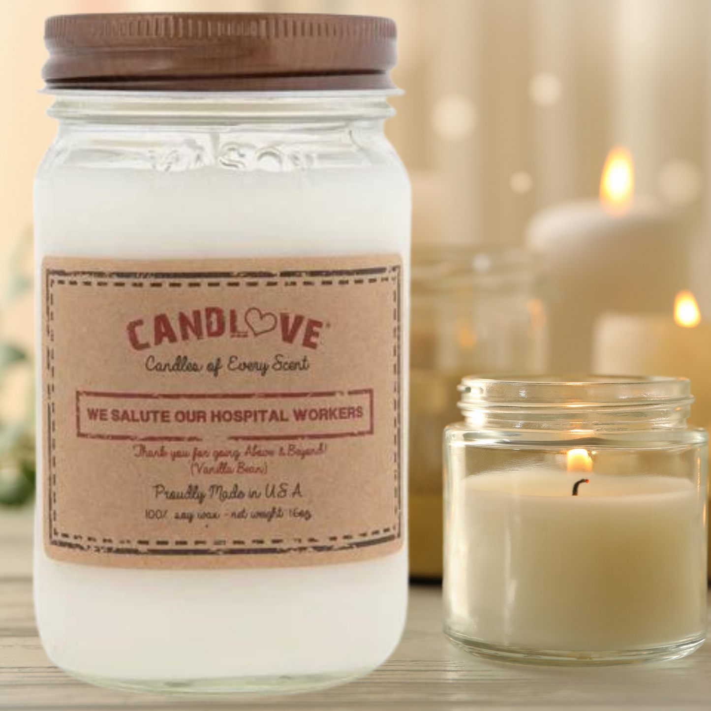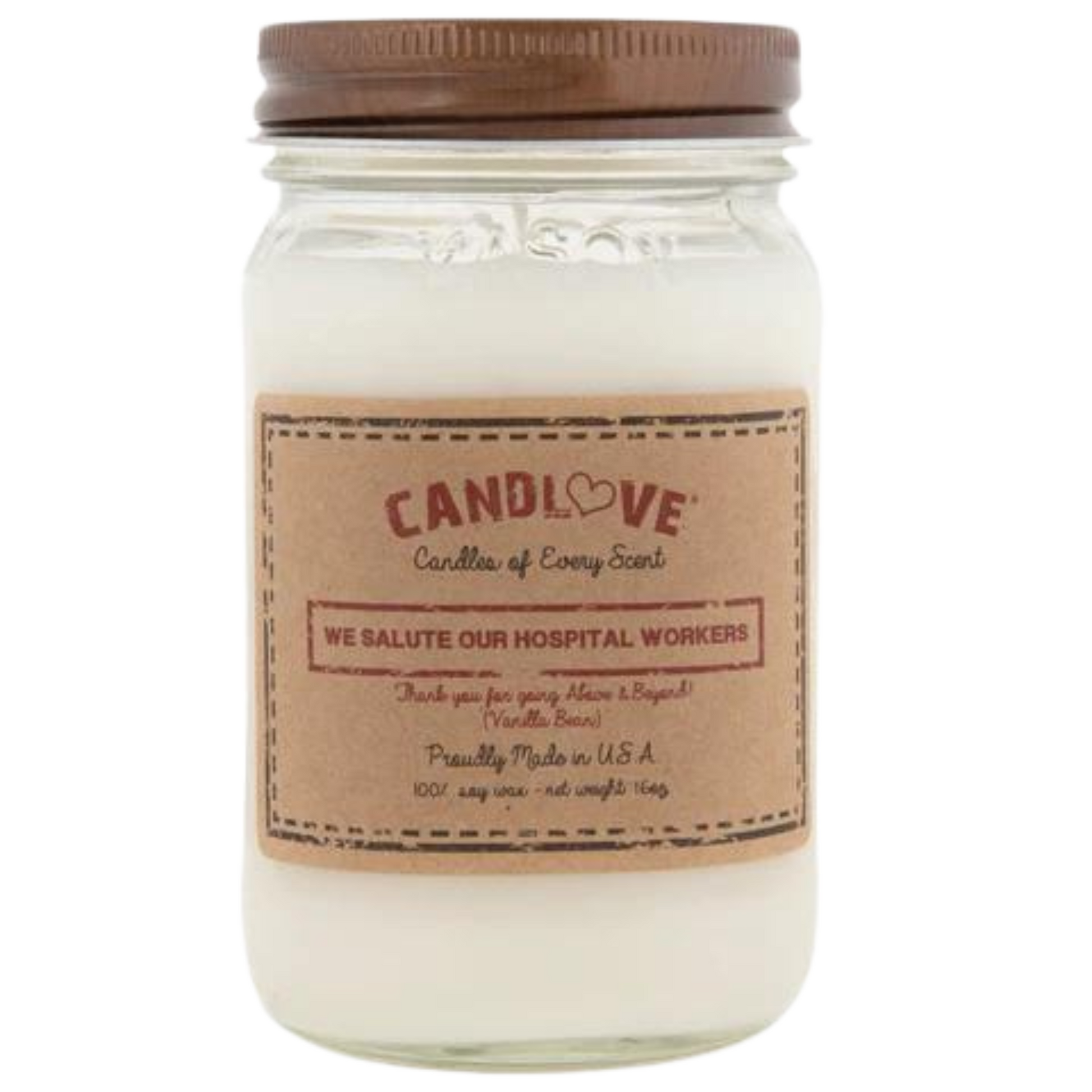 Candlove Vanilla We Salute Hospital Workers Scented Candle - Non-Toxic 100% Soy Candle - Handmade & Hand Poured Long Burning Candle - Highly Scented All Natural Clean Burning Candle (16 OZ Mason Jar) Made in The USA