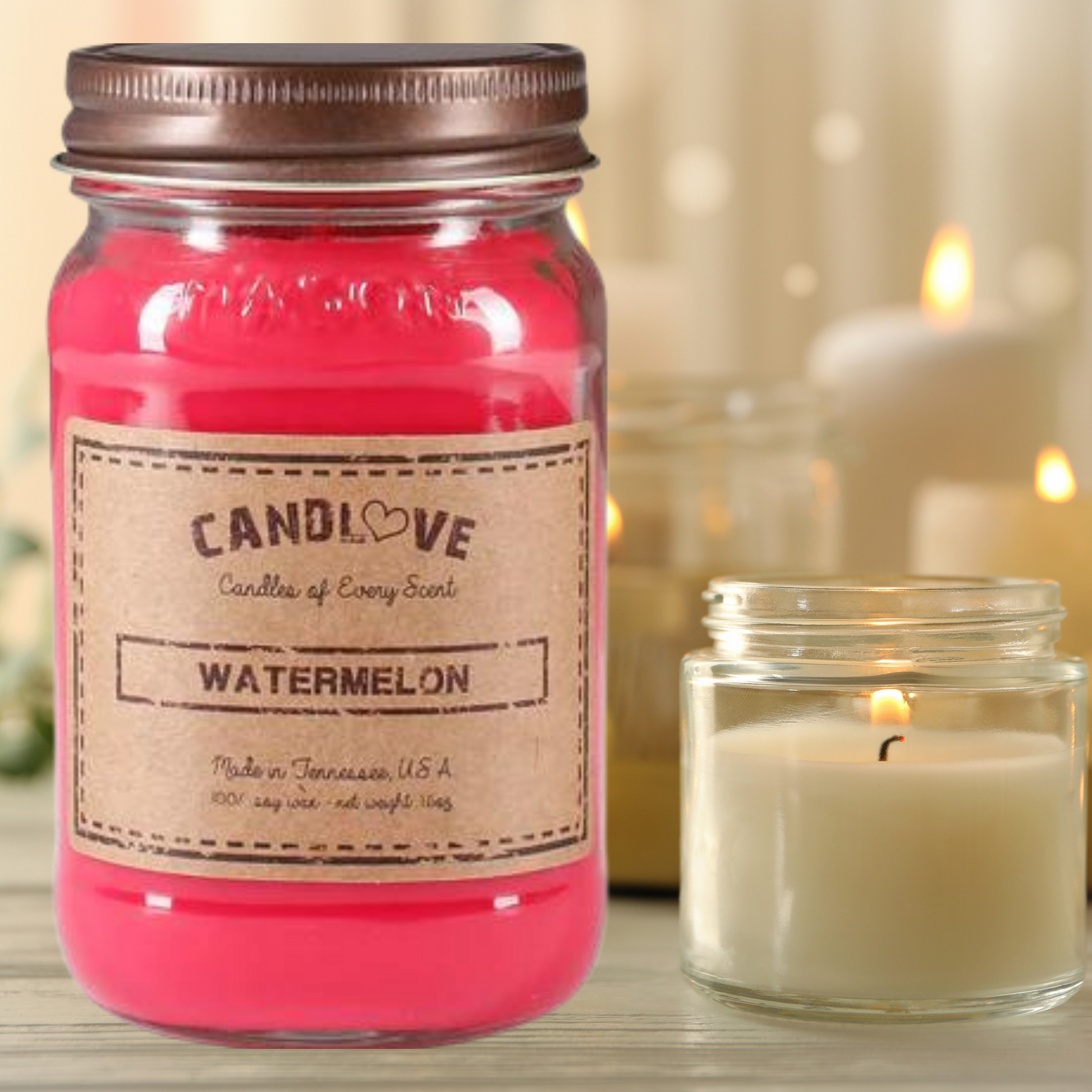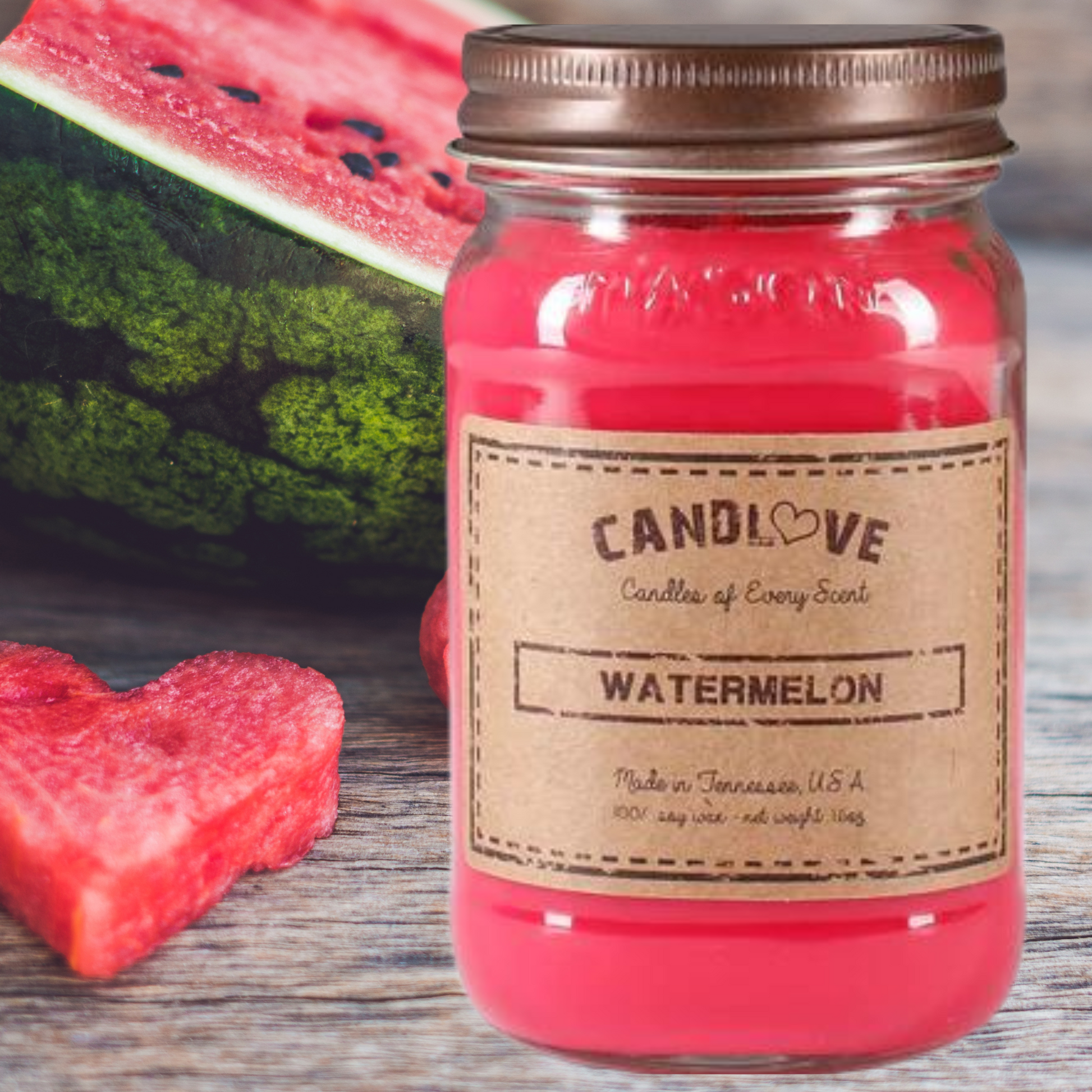 Candlove Watermelon Scented Candle - Non-Toxic 100% Soy Candle - Handmade & Hand Poured Long Burning Candle - Highly Scented All Natural Clean Burning Candle (16 OZ Mason Jar) Made in The USA